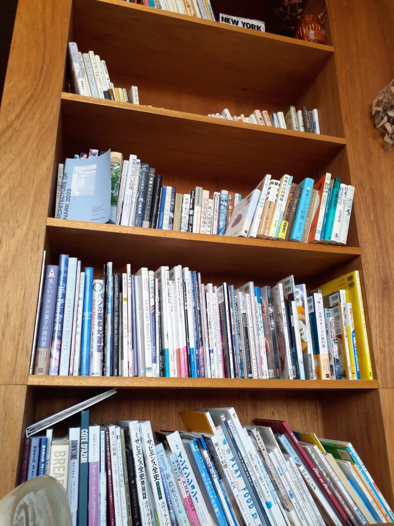店内には、店主さんが集めた食にまつわる書籍が。自由に手に取ってOKだそう。