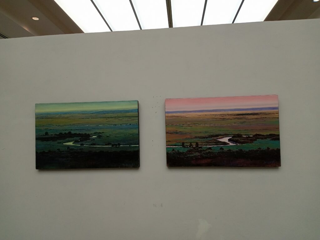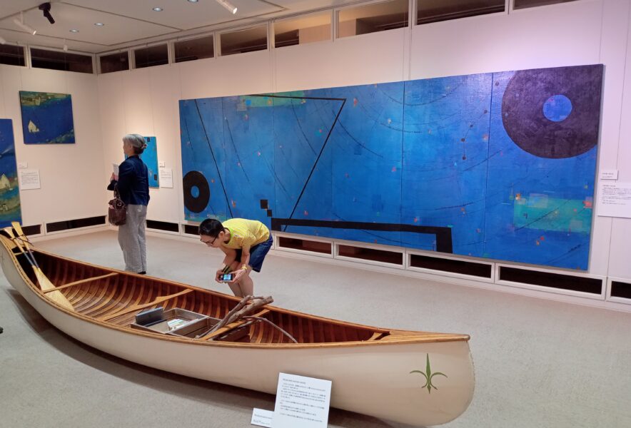 絵とカヌーを見ていると、なるほど、天空に漕ぎ出しているような浮遊感を感じる不思議で心地の良い展示会です。