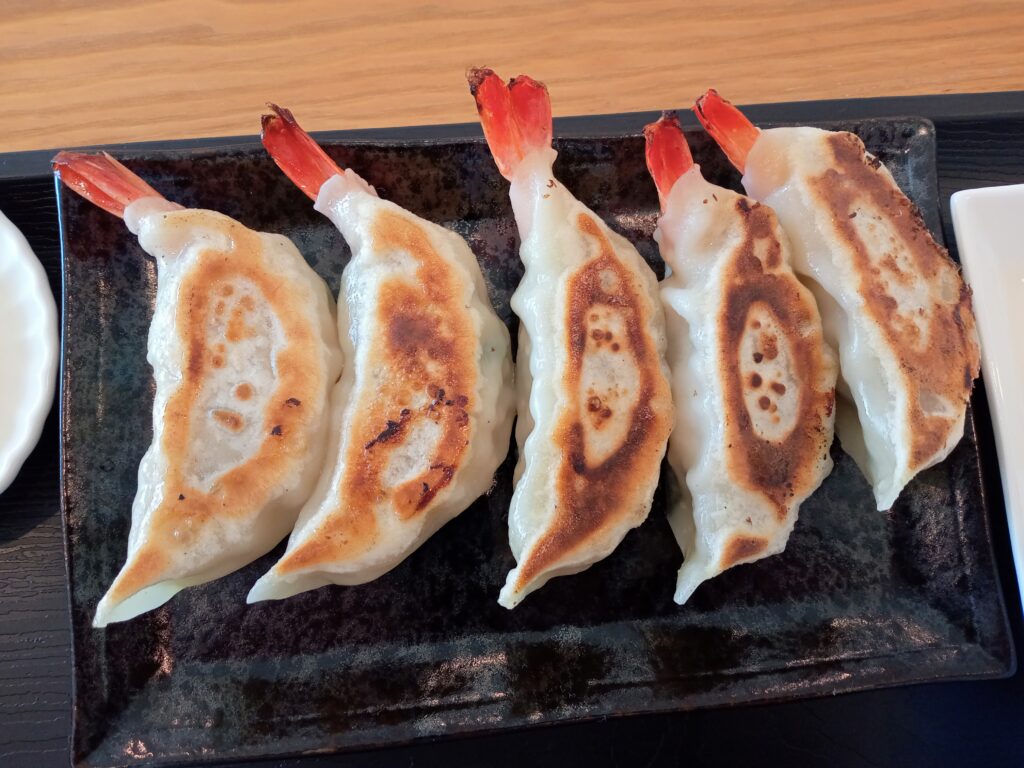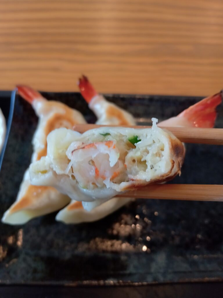 ひとくち齧れば餃子自体の肉汁と海老の肉厚プリッとした歯ごたえがマッチしてもうあっという間に完食しちゃうヤツなんです…!!