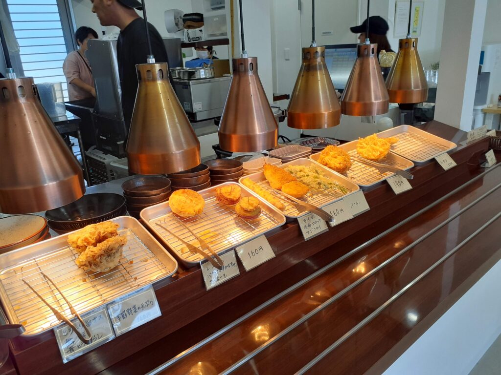 うどん&あげものカウンターで注文する、セルフスタイル。お出汁も自分でかけます。