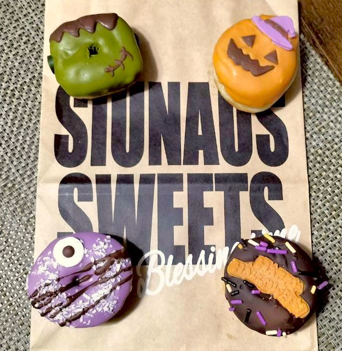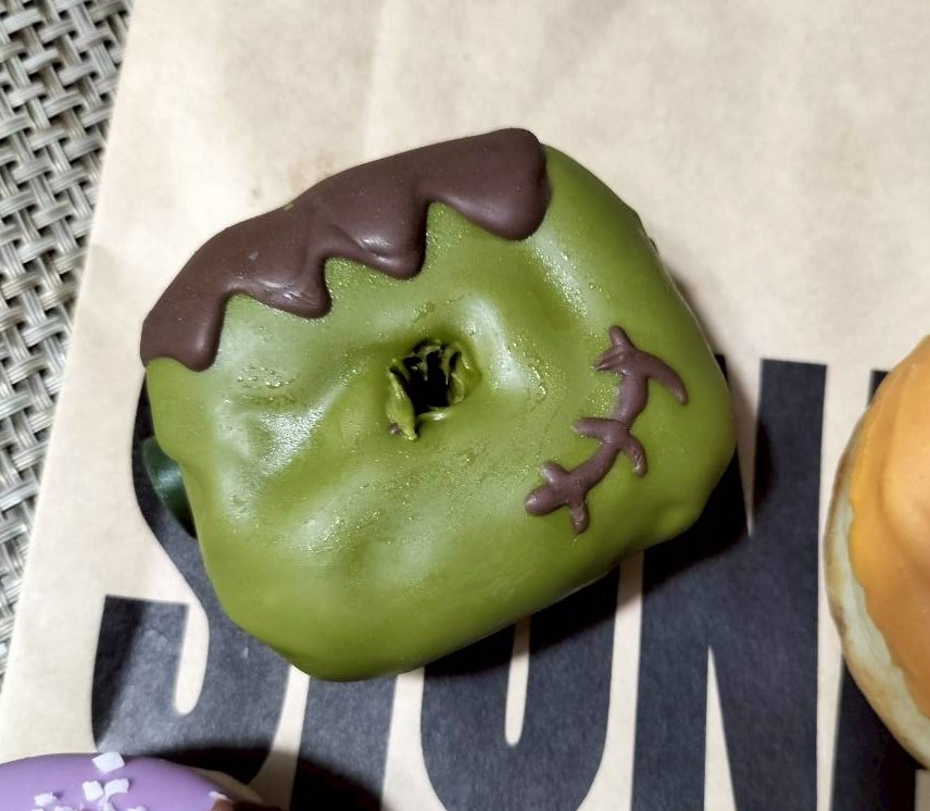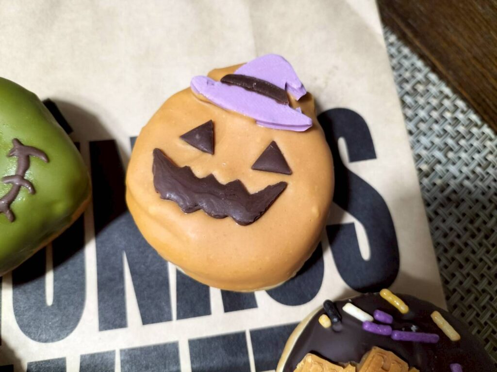 メガネは上のフランケンシュタインドーナツを食べました♪チョコたっぷりでドーナツはふわもっちり、軽い食べ応えなので、一個じゃ足りなかった…
