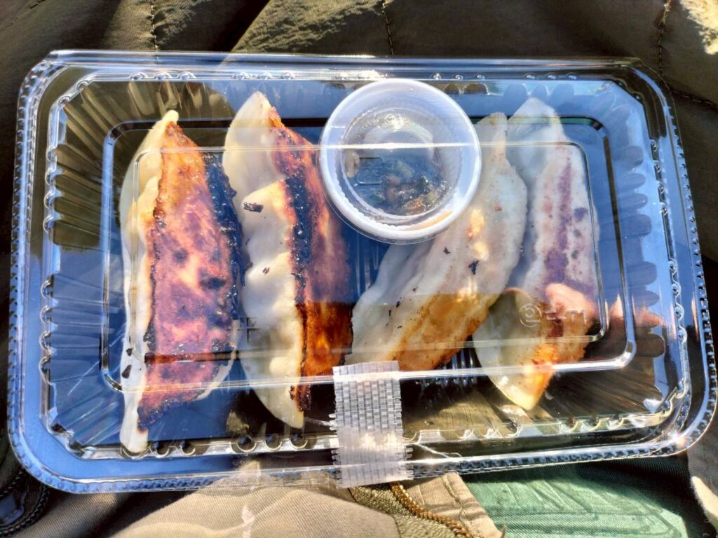 メガネもいそいそと1皿500円の餃子を全店舗購入♪スタンプ4個でじゃんけん大会にも参加できるという、大変うれしいイベント盛りだくさん!