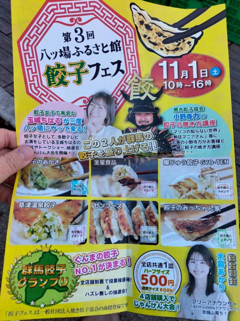 2025年11月1日(土)、三連休初日に、【 道の駅 八ッ場ふるさと館 】にて開催された【第3回 八ッ場ふるさと館餃子フェス】へ行って参りました!