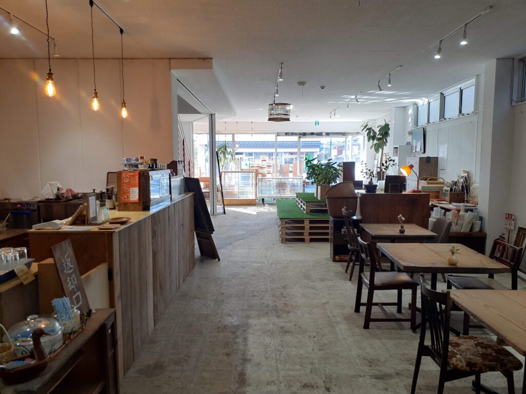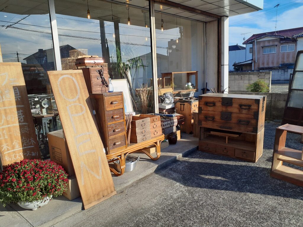 元家具店だった店舗をリノベーションし、1階をカフェ、2階を古道具売場にしています。