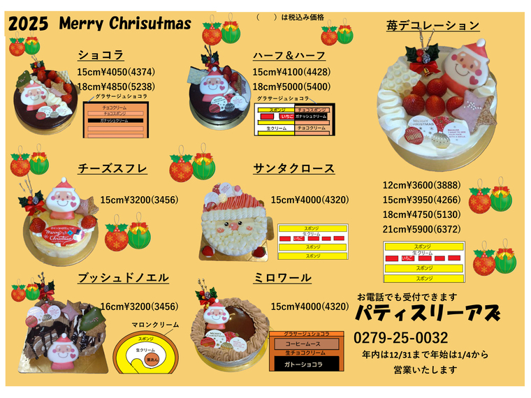 渋川市のお菓子店「パティスリーアズ」でもクリスマスケーキ予約受付中!