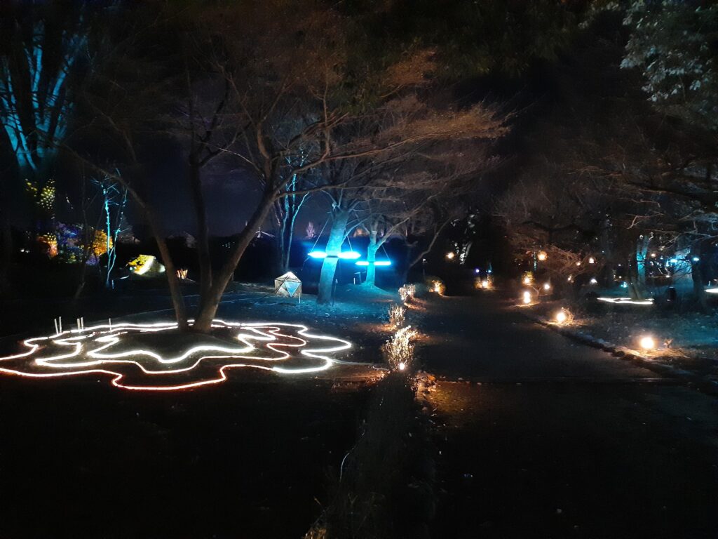 ぐんまフラワーパークプラスで体験する「光と音のナイトウォーク」。体感型フラワーパークならではの没入体験型ライトアップです!
