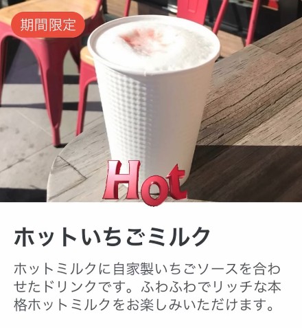 冷たいスイーツだけではなく、暖かい飲み物も新登場。