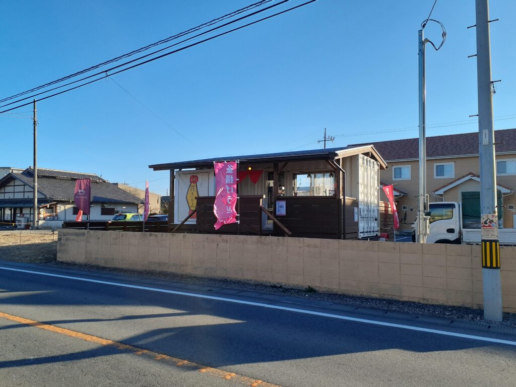 お店の遠景。手前の道路が「県道24号」です。