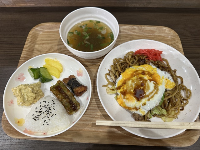 人気のランチセットは焼きそばにおにぎり、中華スープ、おかず、漬物までついちゃう。
