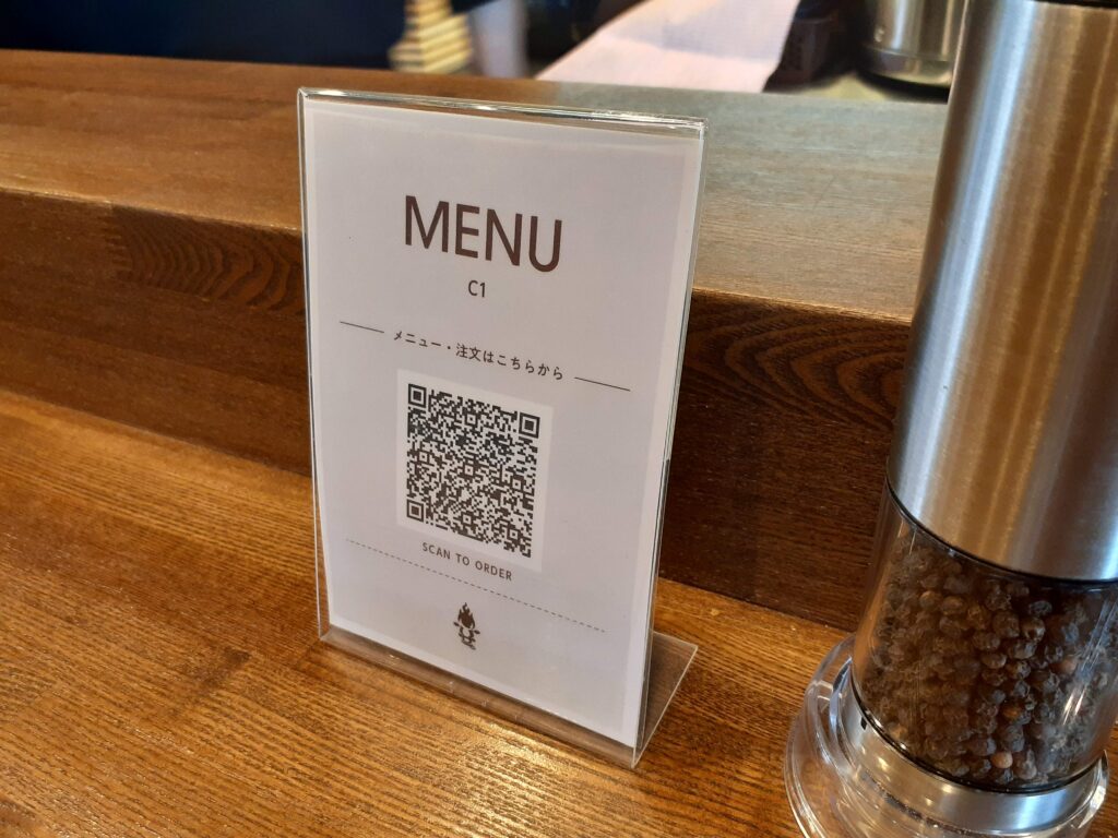 注文はテーブル上のQRを読み込んでお願いするスタイル。スマホがないと注文できないので、ご注意を!