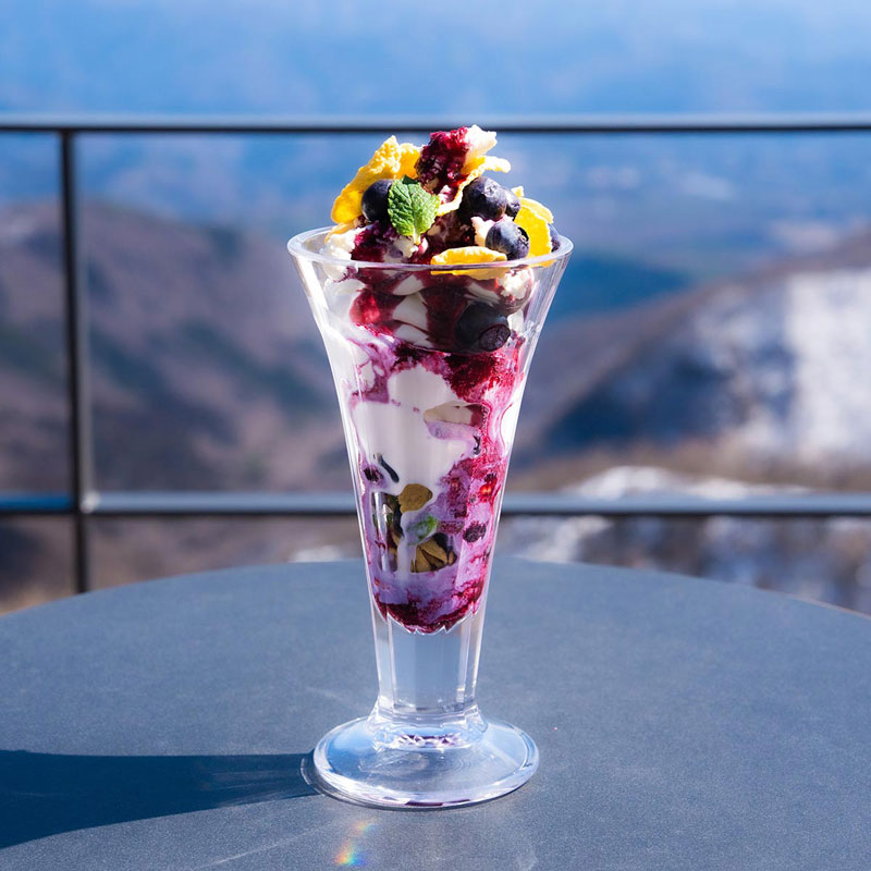 ▲パフェ(『あかぎのブルーベリーチーズパフェ』)も新登場